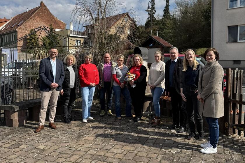 Neben Skadi Köhler nahmen zahlreiche Vertreterinnen und Vertreter aus Verband und Kommune an dem Termin teil, darunter Torsten Madeheim, Regionalvorstand Westthüringen, Rainer Lämmerhirt, Bürgermeister der Stadt Amt Creuzburg, sowie Ronny Schwanz, Ortsteilbürgermeister. Ebenfalls anwesend waren Führungskräfte aus den Bereichen Pflege, Jugend und Kindertagesstätten.