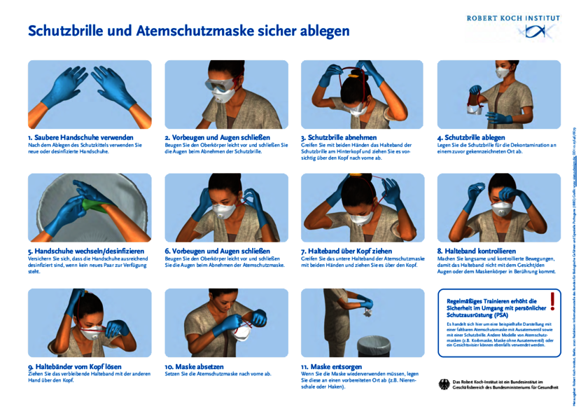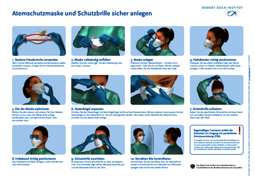 Die Fachleute vom Robert-Koch-Institut haben noch eine paar weitere Tipps zum Umgang mit der Schutzausrüstung parat: