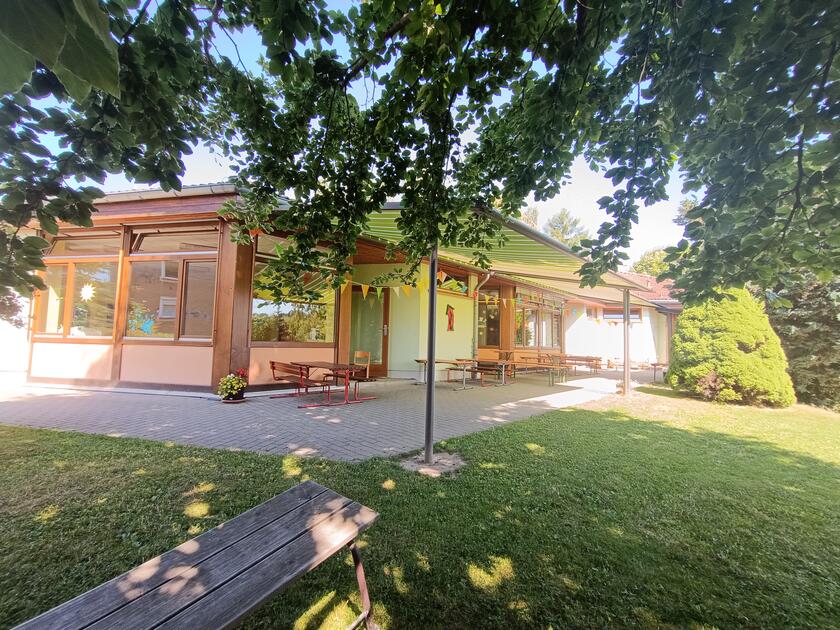 Unsere Einrichtung befindet sich in einem modernen Flachbau auf einem 3500 qm großen Grundstück in ruhiger, aber zentraler Lage. Wir betreuen 77 Kinder zwischen einem und zehn Jahren. Die Gruppenräume haben einen Zutritt über die Außenterrasse in den Garten. Der Mehrzweckraum bietet viele Möglichkeiten für Sport und Spiel. Das Gebäude ist teilunterkellert, dort befindet sich die Ruhezone des Hauses. Im großen Garten in östlicher Hanglage mit Spielgeräten für alle Altersgruppen und vielen Bäumen und Sträuchern können sich die Kinder nach Lust und Laune bewegen.