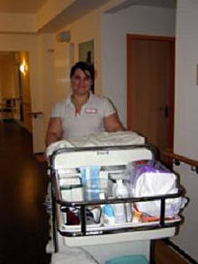 Anne ist meistens im Frühdienst ab 06.00 Uhr morgens eingeteilt. Sie unterstützt die Pflegekräfte bei der Körperpflege der Bewohnerinnen und Bewohner (waschen, anziehen, Betten machen, ...) und bereitet das Austeilen der Mahlzeiten vor.