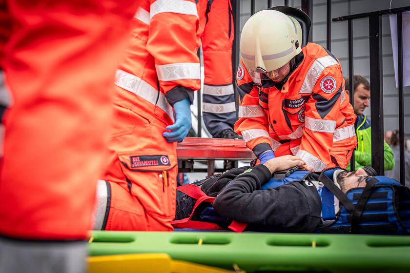 Das Herzstück des Wochenendes bildete der Bundeswettkampf in Erster Hilfe und Notfallrettung. 54 Johanniter-Teams aus allen neun Landesverbänden und sechs Gastmannschaften traten auf dem Gelände der Messe Erfurt in realistischen Szenarien gegeneinander an, um die besten Retter Deutschlands zu ermitteln. Die Teilnehmenden bewältigten anspruchsvolle Aufgaben aus den Bereichen Erste Hilfe und Notfallrettung. Sie meisterten Einsatzszenarien wie Verkehrsunfälle, Brandverletzungen, Herz-Kreislauf-Erkrankungen oder die Versorgung von Wunden. Alle Szenarien wurden von professionellen Darstellenden überzeugend präsentiert. 130 Schiedsrichterinnen und Schiedsrichter bewerteten die Leistungen.