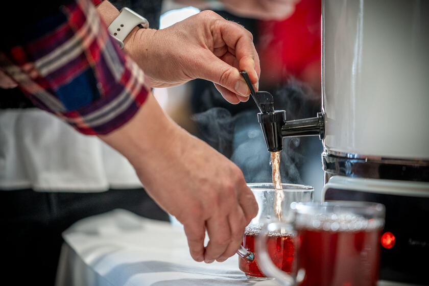 Zahlreiche Mitarbeiterinnen und Mitarbeiter der Landesgeschäftsstelle in Leipzig stellten als Service-Personal sicher, dass sich jeder Gast willkommen und umsorgt fühlte. Gemütliche Musik, geschmückte Tische und strahlende Gesichter sorgten für weihnachtliche Stimmung.