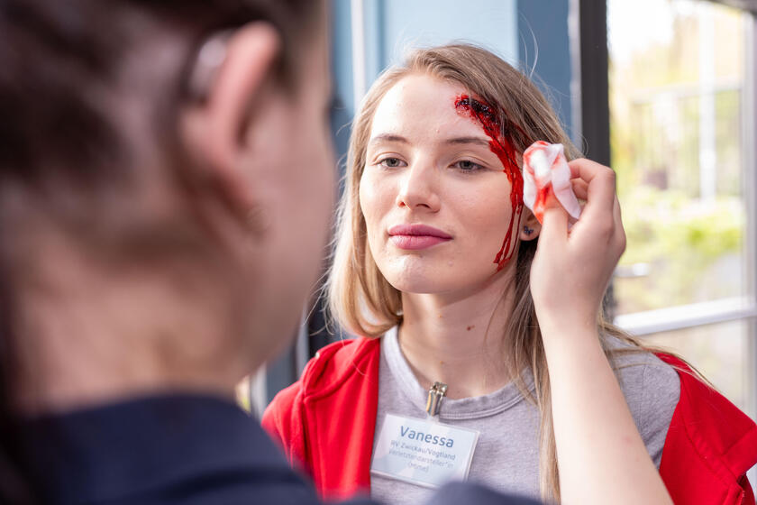 Bei all diesen Aufgaben waren Verletztendarsteller am Werk: Kunstblut tritt aus Wunden und Verbrennungen wirken täuschend echt; die Spezialistinnen und Spezialisten für realistische Unfalldarstellung haben Dutzende Verletzungen nach allen Regeln der Kunst geschminkt. Die Aufgaben für die Teilnehmenden: keinen Hinweis übersehen, in der richtigen Reihenfolge versorgen und gleichzeitig die Verletzten beruhigen. Die Einsätze fanden unter den kritischen Blicken erfahrener Ausbilder statt. Im Nachgang gab es wertvolle fachliche Hinweise und die Chance, das Vorgehen unter Aufsicht noch einmal zu üben.