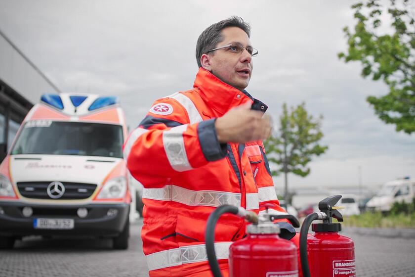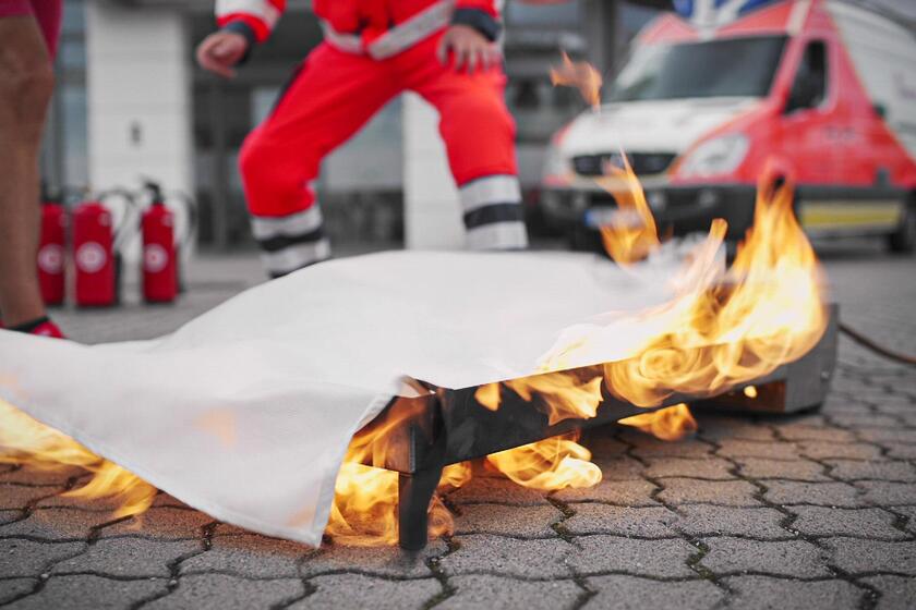 Die Johanniter bilden betriebliche Brandschutzhelferinnen und -helfer entsprechend der Vorgaben der Berufsgenossenschaften aus.