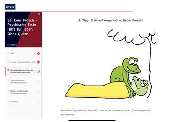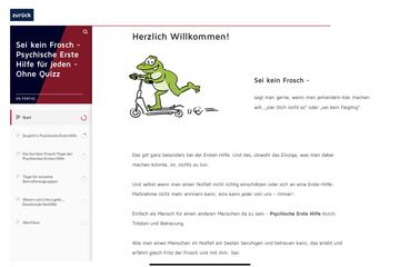 Wie man einen Menschen im Notfall am besten beruhigen und betreuen kann, das erlebt und erfährt gleich Fritz der Frosch und mit ihm: Sie!