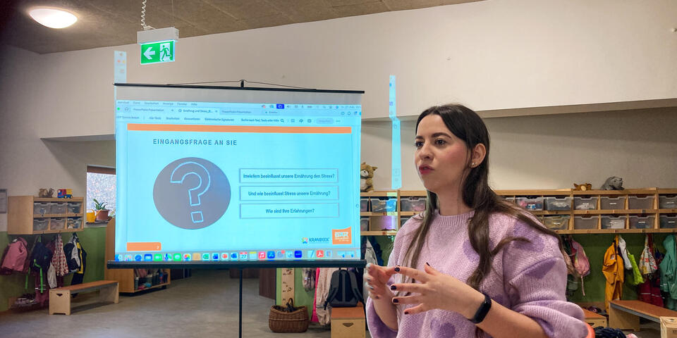 Im Vortrag „Ernährung und Stress“ (gefördert von der DAK) wurde anschaulich erklärt, wie sich Ernährung und Stress gegenseitig beeinflussen.