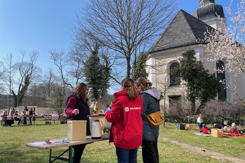 Im Pfarrgarten der Ev.-Luth. Matthäuskirchgemeinde Leipzig gab es am Samstag, 22. März 2025, wieder einen Flohmarkt für Kinderkleidung und Spielsachen. Die Kooperation mit unseren Johanniter-Kitas "Claras Kinder" und "HOCHhinaus" nehmen viele Kita-Eltern gern wahr um alte Schätze weiterzugeben und neue zu erwerben. Zusätzlich zu den Flohmarktständen wurden Spielmöglichkeiten für die Kinder sowie auch Waffeln, Getränke und herzhafte Sandwiches von der jungen Gemeinde angeboten.