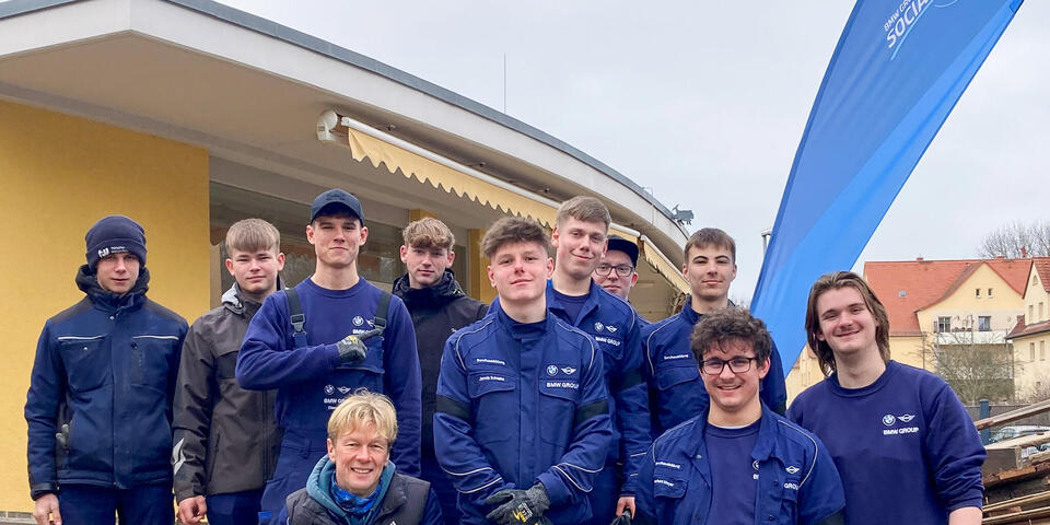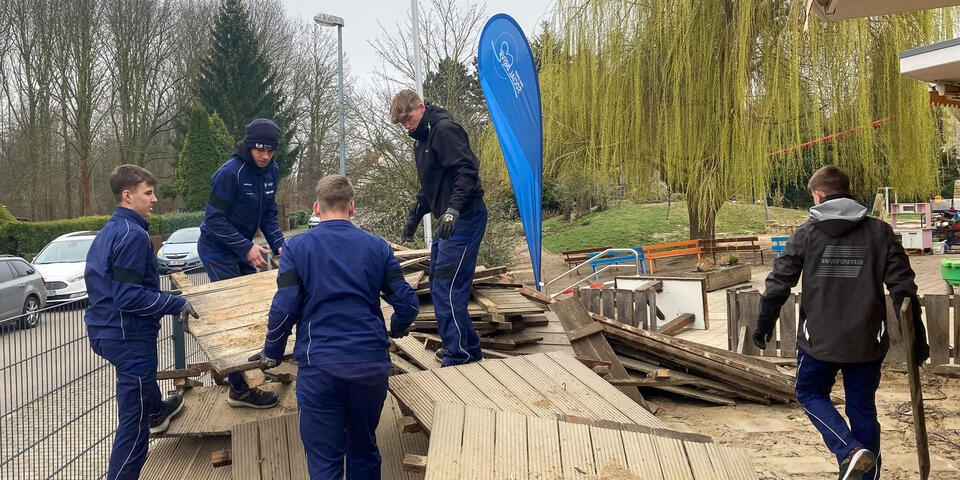 Am 31. März und 3. April 2025 gab es dann einen Social Day in der Kita: Dank unserer Kooperation mit BMW, erhielten wir 25 Azubis als Unterstützung um den Abriss der alten Terrasse vollziehen zu können.