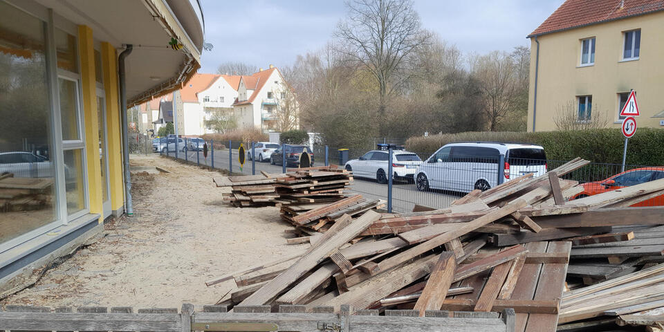 Vom 5. bis 18 April 2025 erfolgte dann der Neuaufbau der Terrasse durch Firma „Trantau“ und die "Zimmerei-Holzbau-Gehrke“. Beide zeigten sehr viel Flexibilität bei der Umsetzung. Kleine zusätzliche Ideen konnten dadurch in die Gestaltung einfließen.
