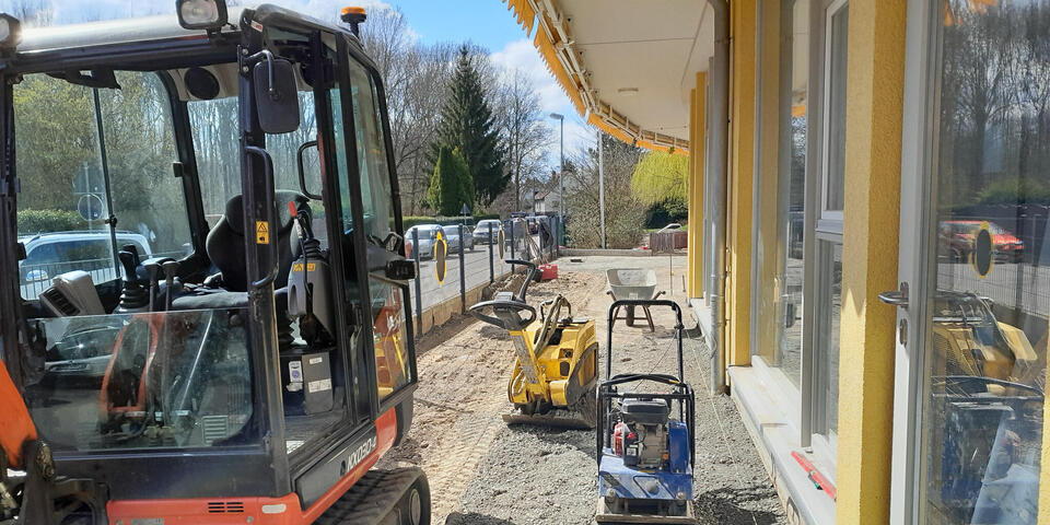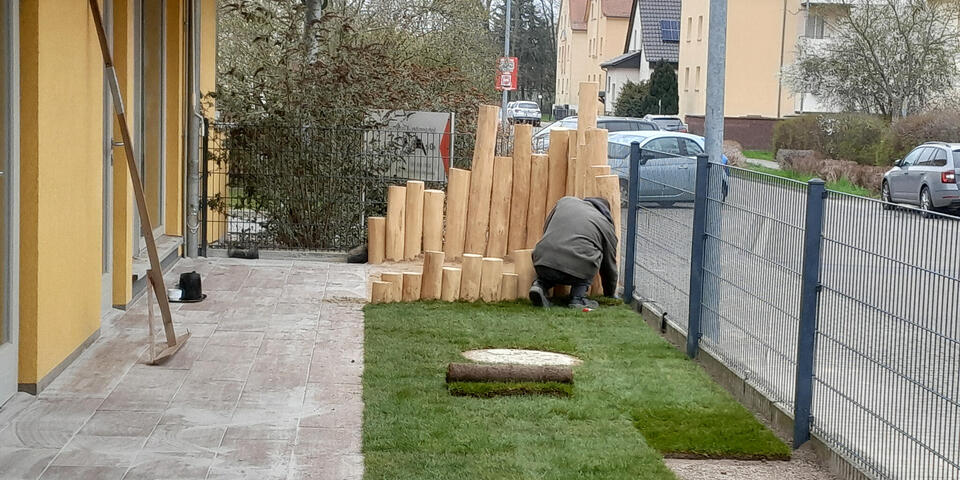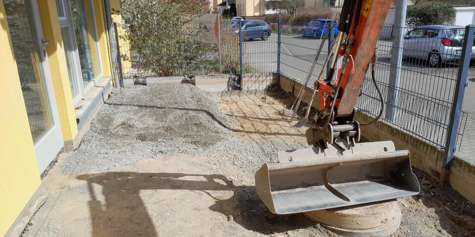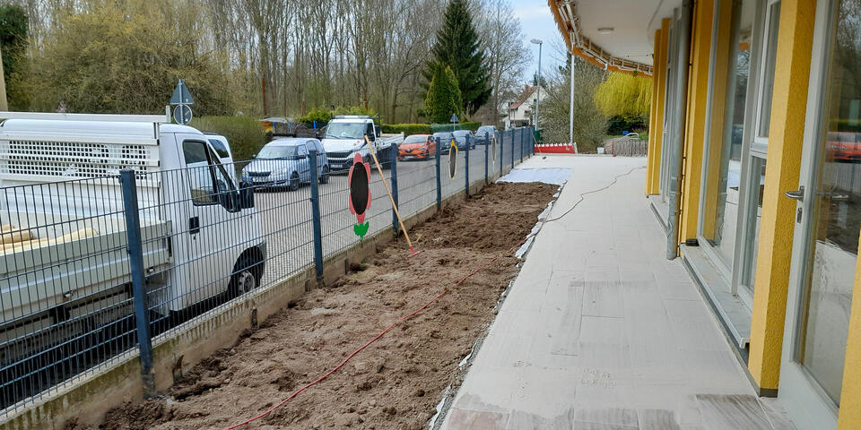 Bereits im September 2024 wurden Ideen und die Umsetzung einer neuen Kita-Terrasse besprochen und geprüft. Drei Monate später, im Februar 2025 hatte die Suche nach einer Firma, die unsere Vision mit den uns finanziell möglichen Mitteln verwirklichen konnte, mit „Dienstleistungen & Bauarbeiten Trantau“ ein Ende.