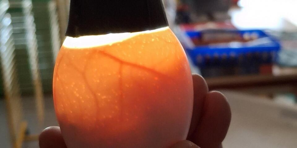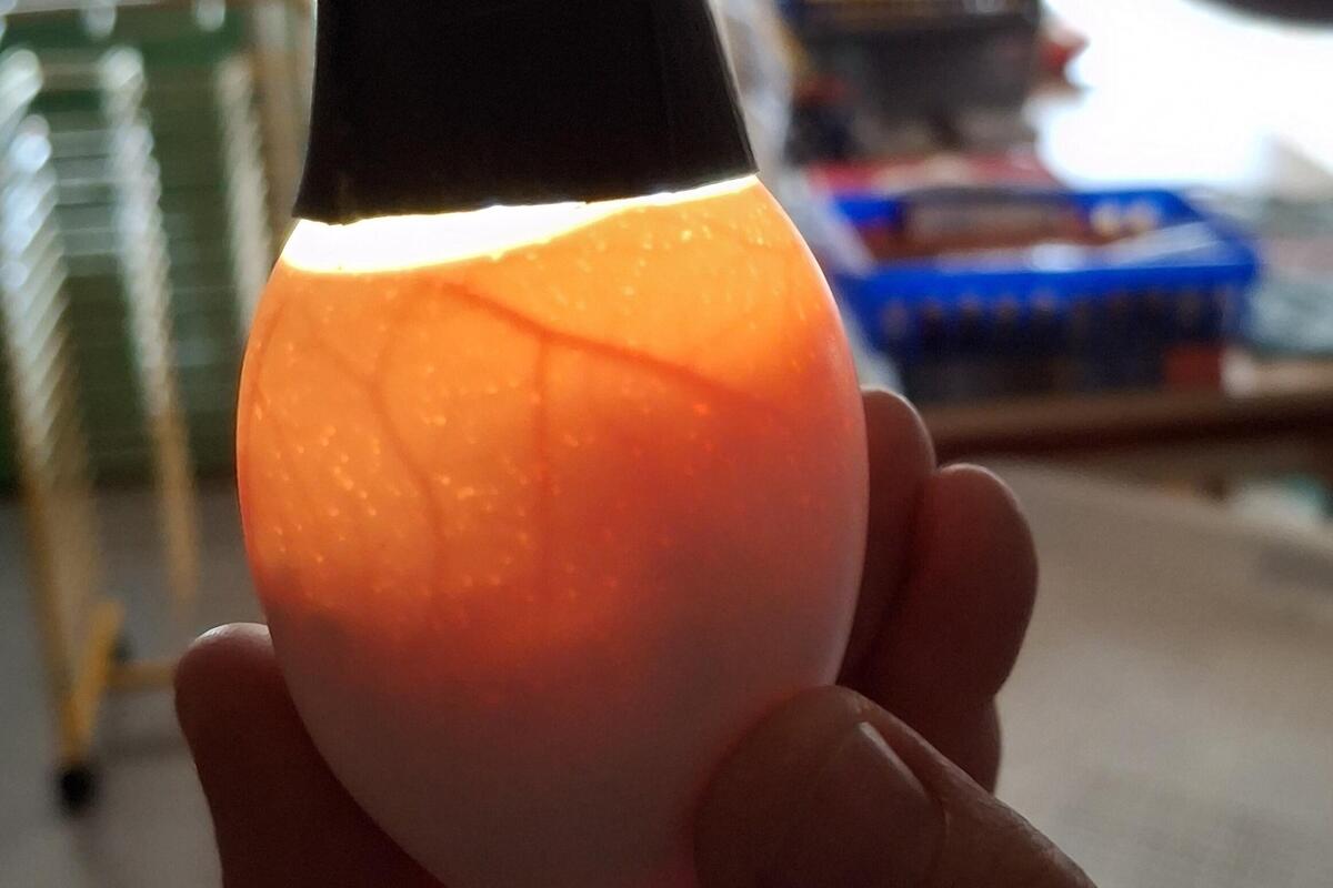 Täglich schauten wir gemeinsam mit den Kindern nach, ob man Veränderungen an den Eiern sehen konnte. Das war für uns alle sehr aufregend. Nach einigen Tagen durchleuchteten wir die Eier. So wollten wir feststellen, ob sich darin auch wirklich kleine Küken befinden. Wir freuten uns sehr darüber, dass in mehreren Eiern ein großer Schatten und auch Adern zu sehen waren. Dies ist ein erstes Zeichen, dass aus diesen Eiern auch Küken schlüpfen können.