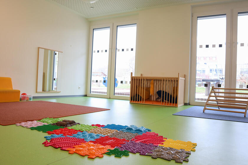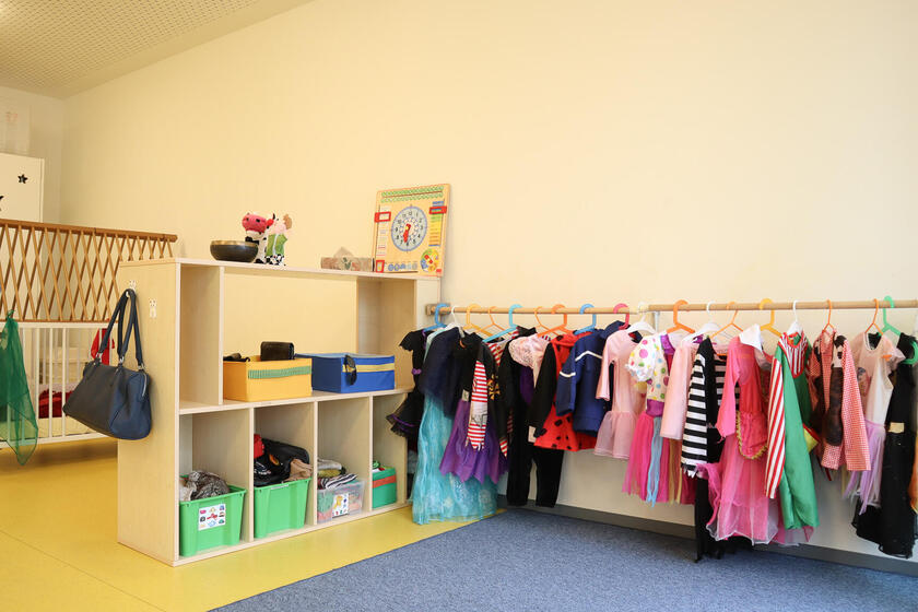 Eine Besonderheit ist die oberste Etage, welche statt Gruppenräumen individuell eingerichtete Themenräume bereithält und die Kinder – unsere Nestflüchter - schrittweise aus den Kleingruppen in die offene Arbeit begleitet. So schaffen wir optimale Bedingungen für einen kindzentrierten, bedürfnisorientierten und partizipatorischen Übergang in den Kindergarten.