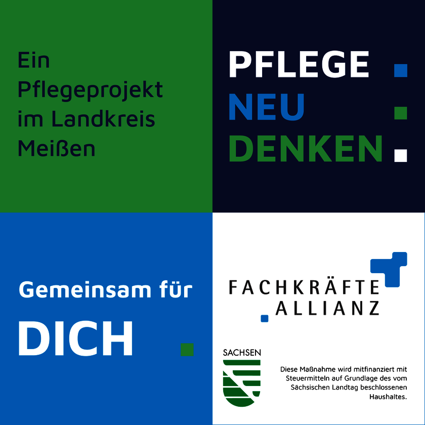 - Eine „Pflege-Lounge“ als trägerübergreifende Austauschplattform wird installiert, um ein gemeinsames Vorgehen im Landkreis Meißen abzustimmen und gemeinsame Ideen und Lösungsansätze auf Praxistauglichkeit zu testen.