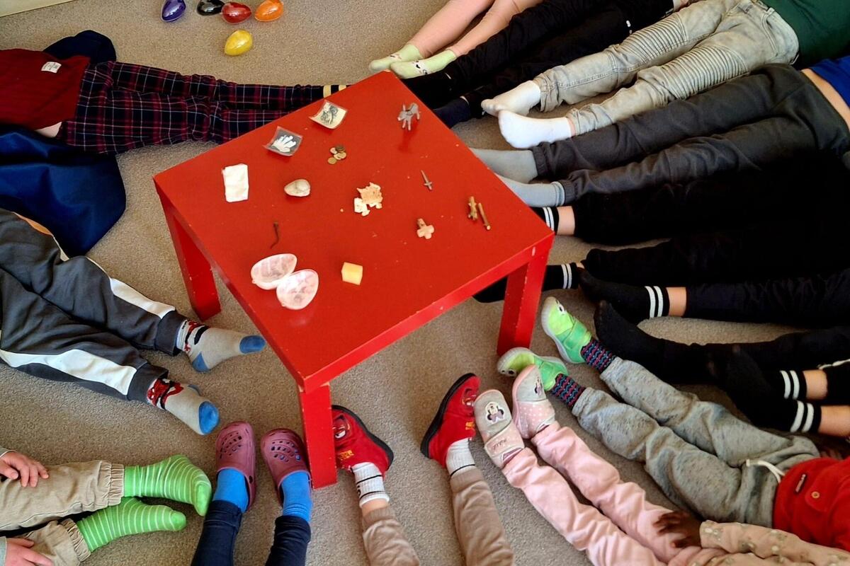 Bereits am Gründonnerstag begann das Ferienprogramm mit einem besonderen Angebot: Die Religionspädagogin Dagmar besuchte die Einrichtung und vermittelte den Kindern auf kindgerechte Weise den Leidensweg Jesu sowie die Hintergründe der Ostergeschichte.