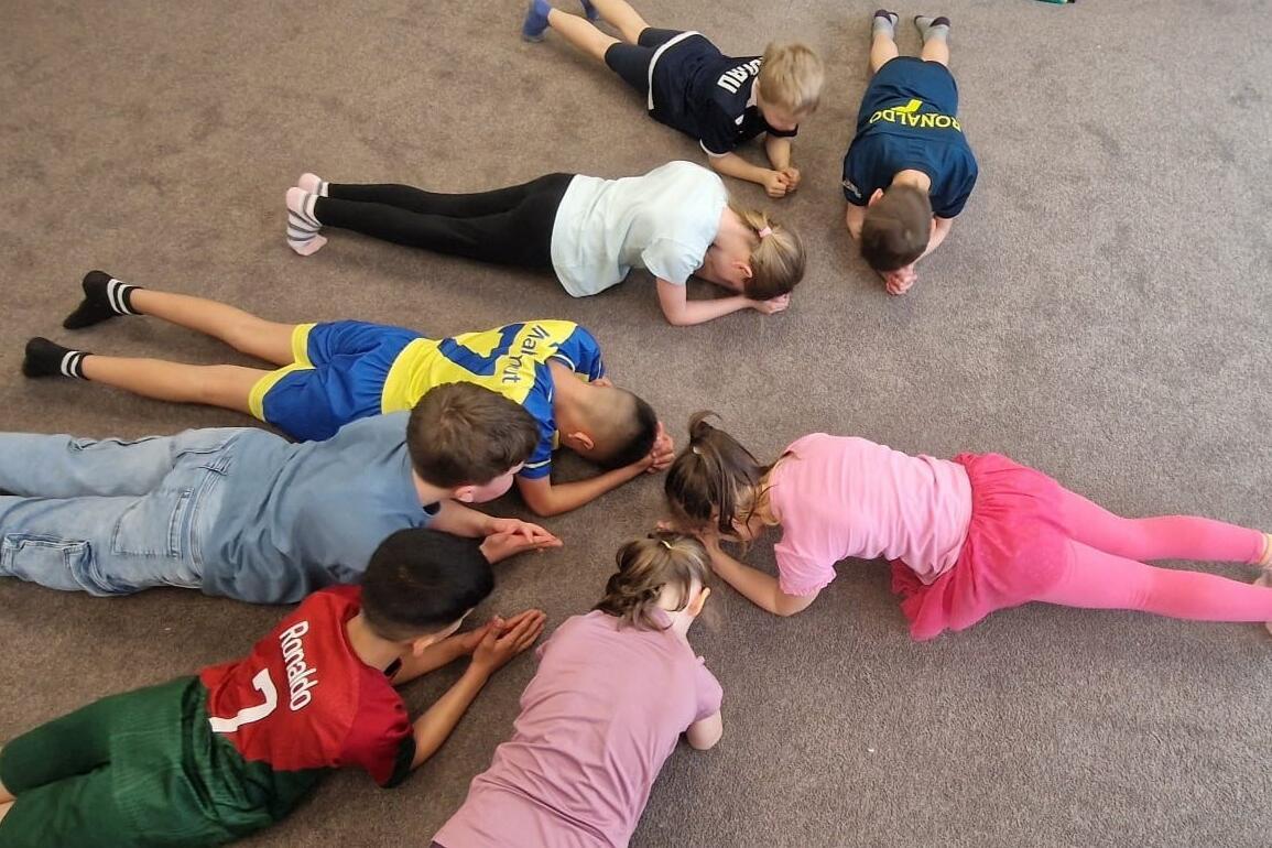 Den gelungenen Abschluss der Osterferien bildeten sportliche Aktivitäten in der Einrichtung. Nach ersten Übungen zur körperlichen Fitness, wie beispielsweise Planks, standen vor allem Spiel und Spaß im Vordergrund.