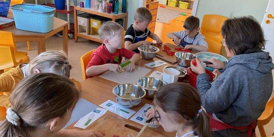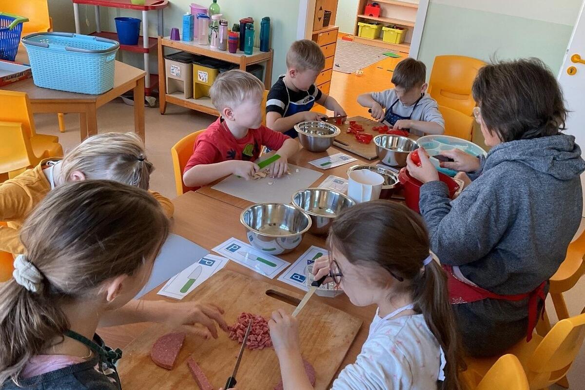 Mit viel Freude wurde gemeinsam ein leckerer Obstsalat und ein süßer Nachtisch zubereitet. Ein besonderes Highlight war das eigene Pizzabacken: Mit Geduld wurde geschnippelt, geknetet und nach Herzenslust belegt – am Ende konnten alle ihre selbstgemachten Pizzen genießen.