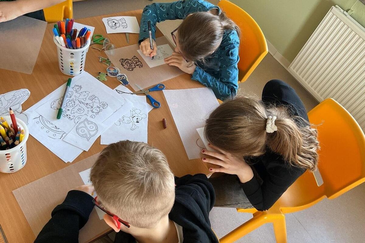Neben Kochen und Backen blieb auch viel Zeit zum Spielen und Basteln. Mit großer Kreativität entstanden bunte Schrumpffolien-Kunstwerke, und für die bunte Faschingsfeier wurde die Deko vorbereitet.