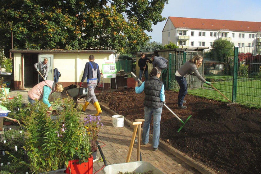 Beim Elterneinsatz im Werdauer „Kinderland“ haben viele fleißige Hände den Garten der Kita winterfest gemacht.