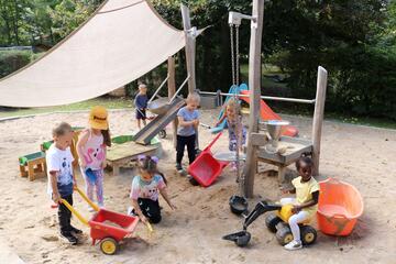 Um die vielfältigen Interessen unserer Kinder zu fördern, ihre Neugier zu beflügeln und ihrem Bewegungsdrang gerecht zu werden, bietet unsere Einrichtung neben dem großen Außengelände eine Vielzahl weiterer Angebote wie z. B. kreatives Arbeiten im Atelier und der Töpferwerkstatt sowie gemeinsames Backen und Kochen in der Kinderküche.