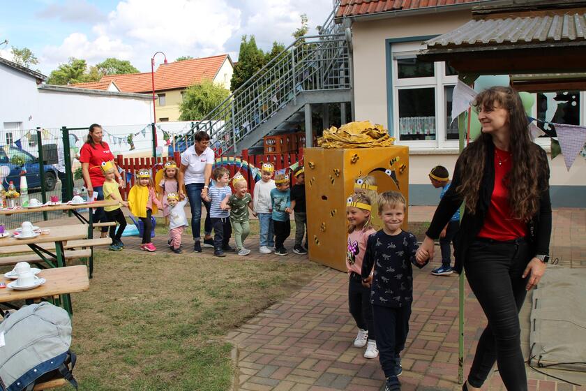 Viele Kinder, Erzieherinnen, Eltern und Großeltern, aber auch ehemalige Mitarbeiterinnen und Bewohner aus Bothenheilingen nahmen an der Veranstaltung teil und wurden bestens unterhalten. Zu Beginn präsentierten die Kinder ihr Programm zum Thema Bienen und ernteten dafür kräftigen Applaus.