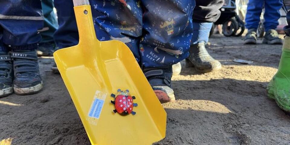 Die ersten Bauarbeiten liegen schon eine Weile zurück und trotzdem ließen es sich die Anwesenden nicht nehmen, den symbolischen Spatenstich zu setzen: Neben Regionalvorstandsmitglied Uwe Kleiner waren heute Amtsdirektorin Marlen Rost, Bauamtsleiter Ron Gollin, der Falkenberger Ortsvorsteher Andreas Püschel sowie Architektin Mariola Dieckmann und Generalunternehmer Michael Datschischin vor Ort, um sich die Baufortschritte der neuen Kita anzusehen.