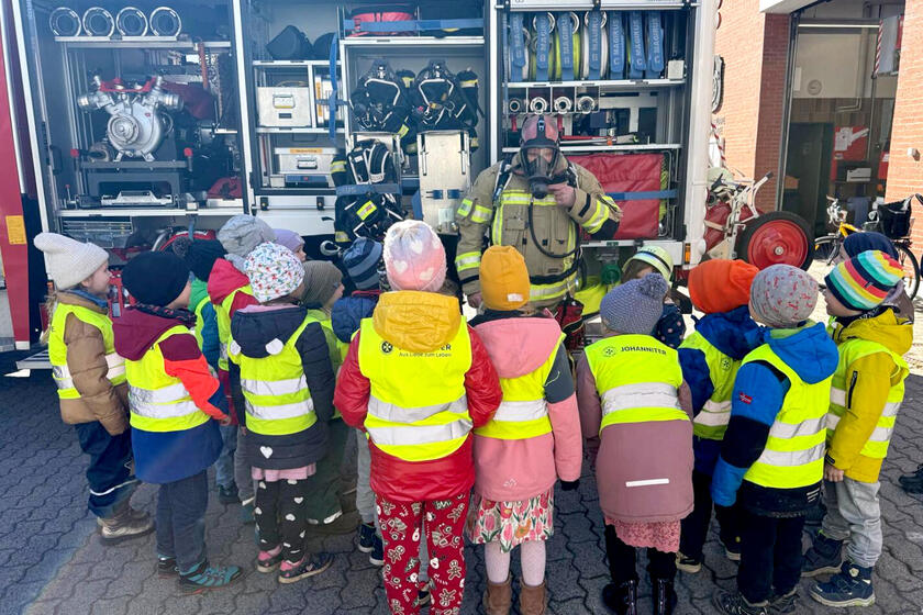 Während die Kinder unserer Johanniter-Kita in Reckendorf sich vor Kurzem angesehen haben, was ein Schreiner so macht, waren die Vorschulkinder der Bamberger Biberbande bei der Feuerwehr zu Gast. Genauer gesagt bei der Löschgruppe 4 in der Bamberger Stadtmitte. Bei Besuchen wie diesen geht es zum einen darum, Einblicke in verschiedene Berufswelten zu bekommen, zum anderen bei der Feuerwehr natürlich auch darum, schon den Kleinsten beizubringen, welche Gefahren von Feuer ausgehen und wie man sich verhalten sollte, wenn ein Feuer ausbricht.