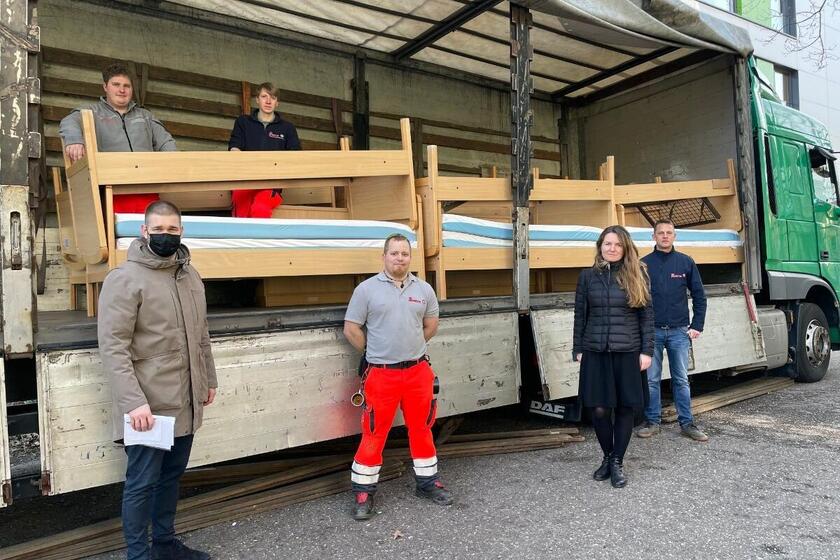Aus dem LVR-Klinikum Düsseldorf wurden 40 Krankenhausbetten sowie Schränke und Tische zur Verfügung gestellt und mit Hilfe von Gabelstablern auf zwei Sattelschlepper geladen. Die Möbel werden in eine psychiatrische Partnerklinik in Beregovo in der Westukraine gebracht. Hier wird die Ausstattung dringend benötigt. Viele Menschen kommen schwer traumatisiert im Krankenhaus an und sind dringend auf medizinische Unterstützung angewiesen.