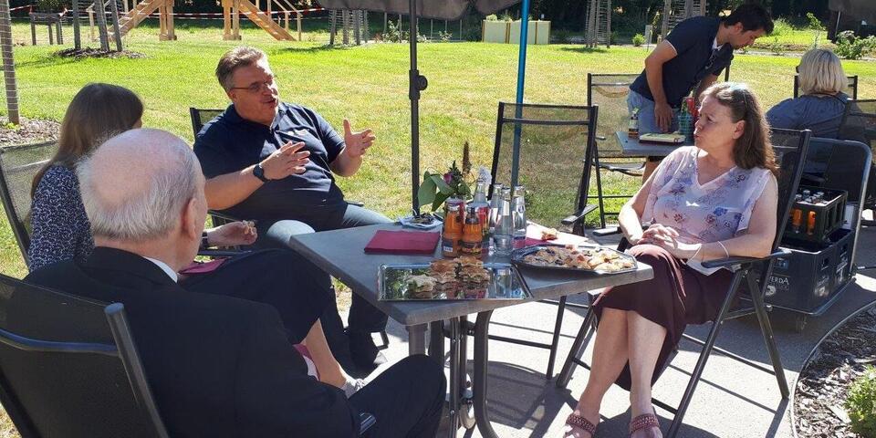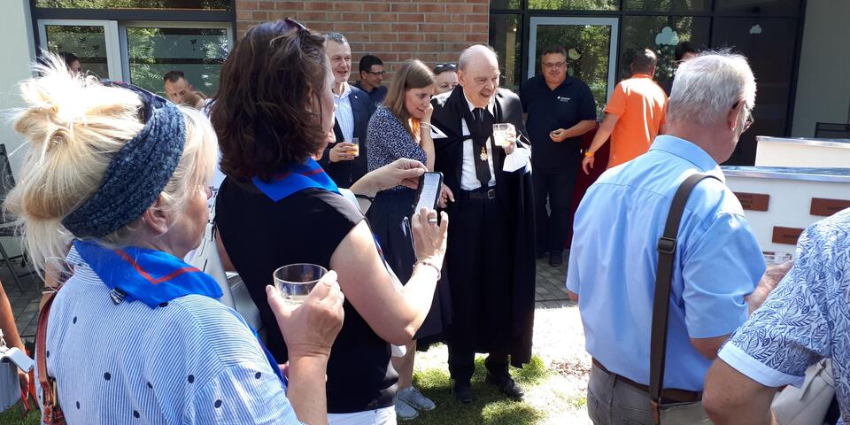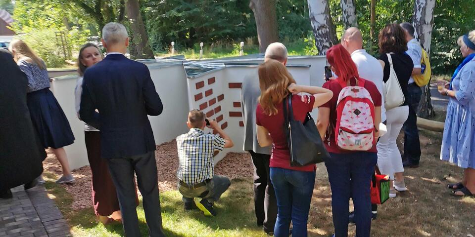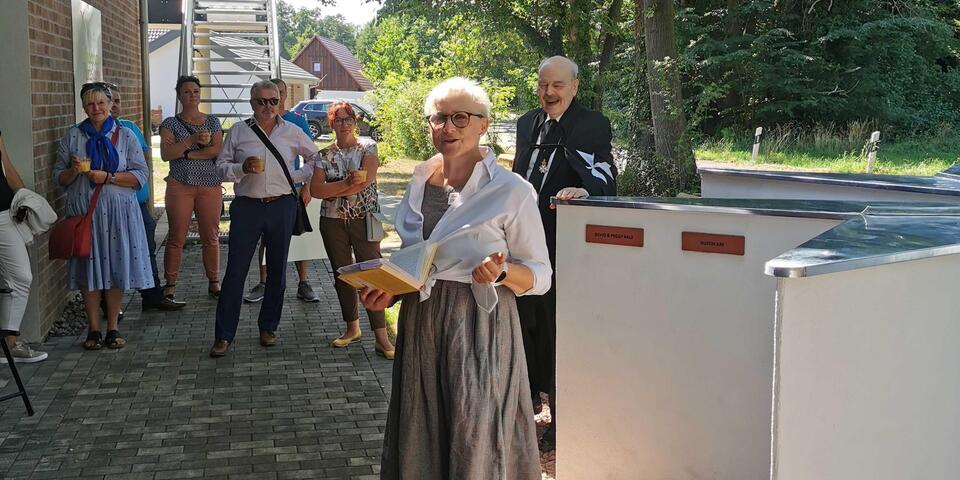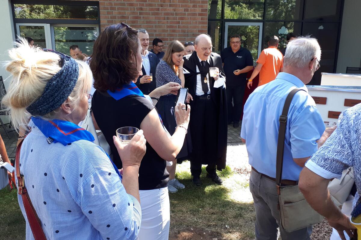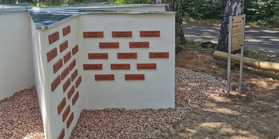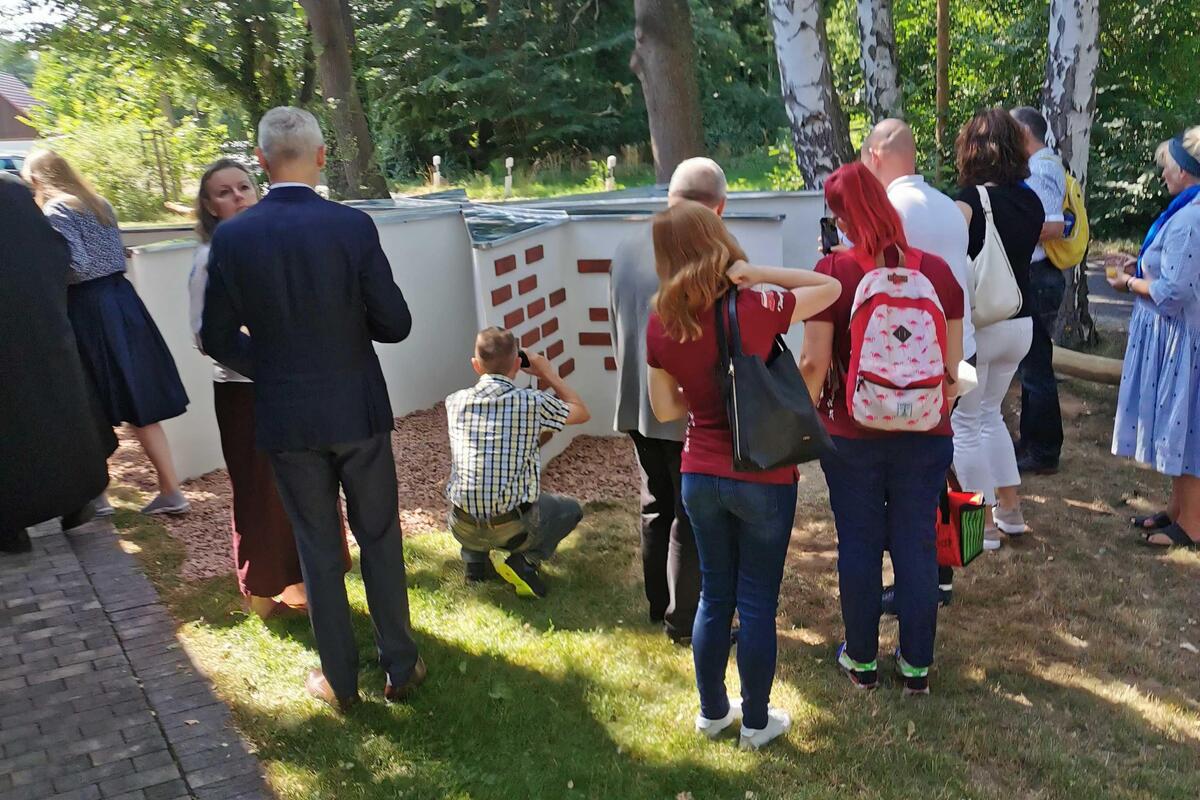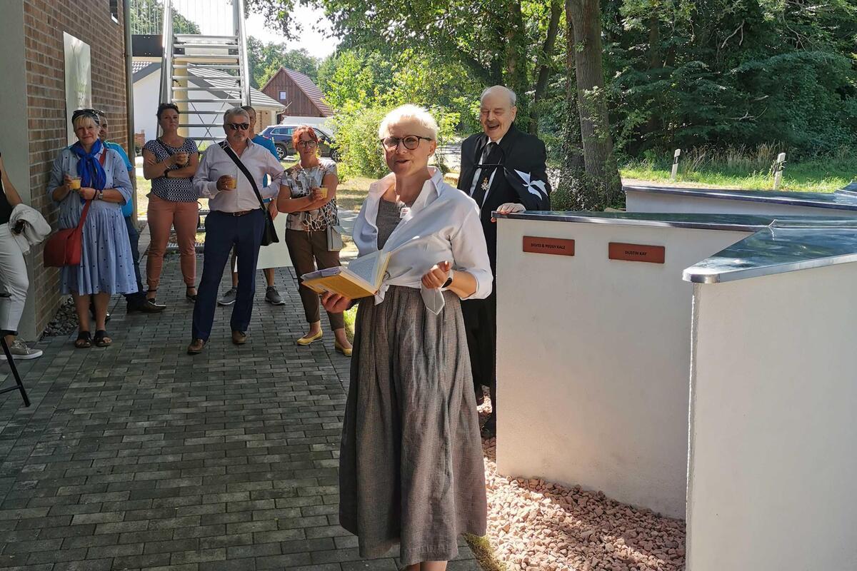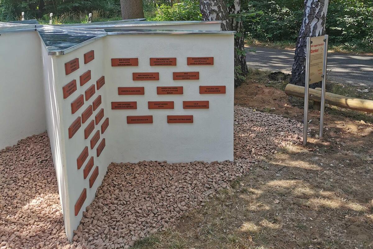 Das Wort Spendenstern hat sich im Laufe des Projekts umgangssprachlich eingebürgert, tatsächlich ist es aber ein Kreuz, das achtspitzige Johanniterkreuz. Ordensritter Freiherr von Recum erinnerte anhand eigener biografischer Stationen an die historischen Wurzeln des Johanniterordens und ließ so eine Brücke bis zu den Spenderinnen und Spender der Gegenwart entstehen. An diesem Johanniterkreuz versammeln sich nun die ersten 34 Spendensteine von Unterstützern unseres Herzensprojektes. Sie repräsentieren einen Querschnitt aus vielen Motiven des wohltätigen Engagements, aus Jung und Alt, aus verschiedenen beruflichen Professionen und auch aus allen Himmelsrichtungen, regional wie überregional. Unserer Einladung zur Einweihung folgten Gäste aus Sömmerda, aus Potsdam, aus Berlin, aus Finsterwalde und natürlich aus der Cottbuser Umgebung. Es war für uns alle eine Freude, dass wir unsere Idee mit den Spendensteinpaten umsetzen und heute endlich einweihen konnten. Welch´ ein glücklicher Tag für uns - wir danken allen sehr dafür!