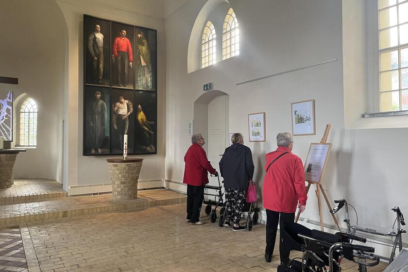 In der Autobahnkirche Zeestow zeigt der Cartoonist Peter Gaymann Situationen aus dem Alltag von Menschen mit Demenz und wie ein freundlicher und humorvoller Umgang mit Demenz aussehen kann.