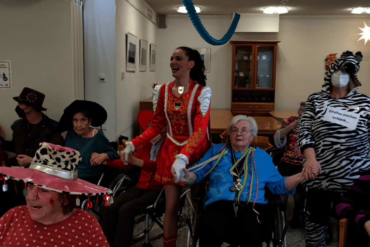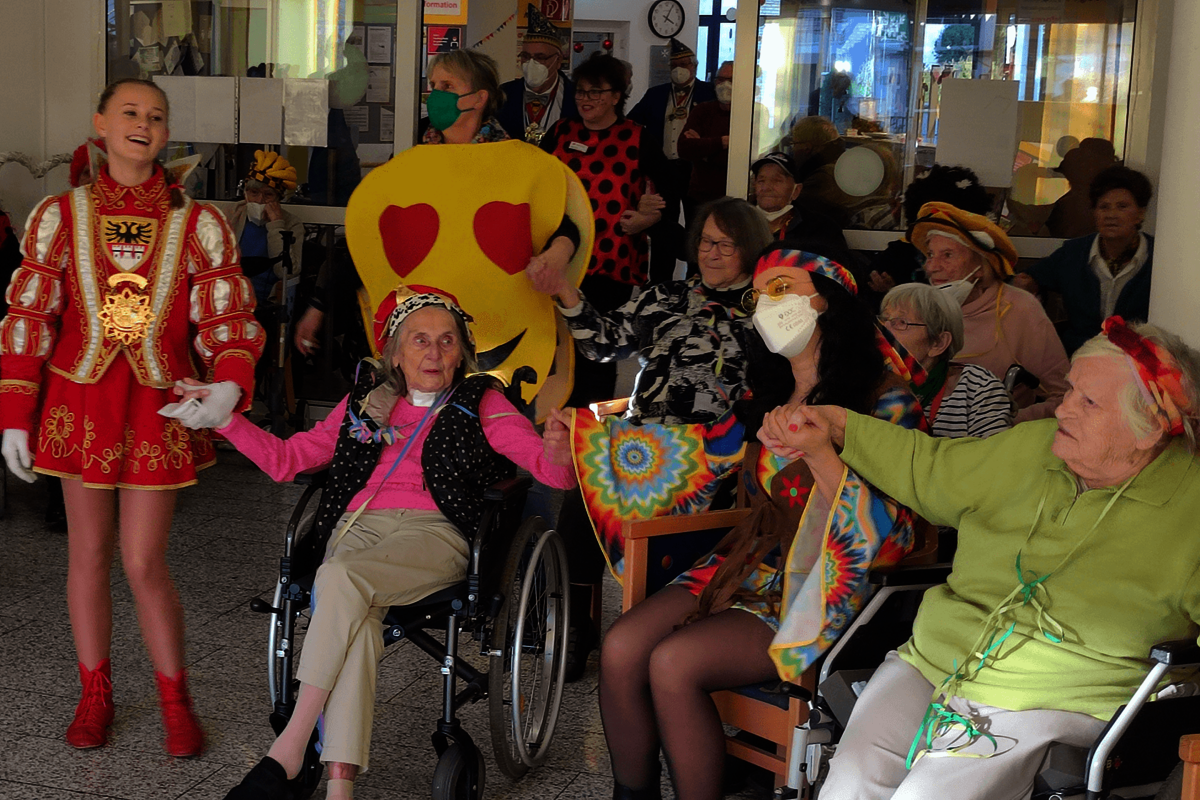 Ein Spektakel mit einem Best of Karnevals-Liedern, tänzerischen Darbietungen, hunderte Male „Helau“ und unzähligen „Bützje“ ließ die Bewohner und Bewohnerinnen außer Rand und Band bis in den frühen Abend schunkeln …