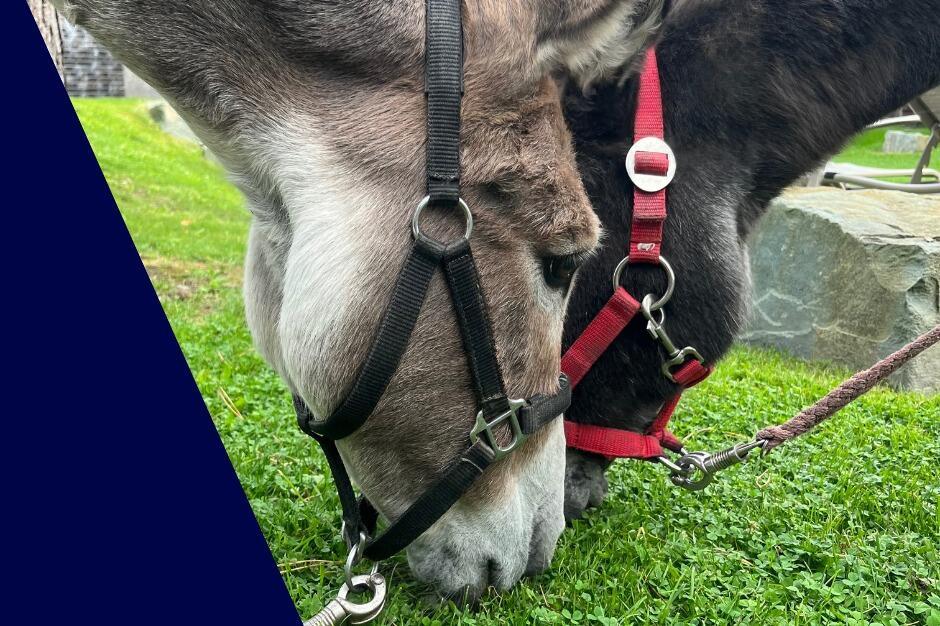 Bei ihrem Außeneinsatz begleitet wurden die beiden Esel von Sandra Teckentrup, der Pädagogischen Leiterin der Kinderfachklinik, und ihrem Ehemann.
