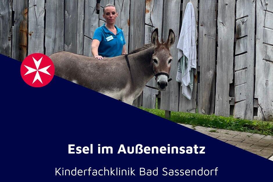 In der Kinderfachklinik Bad Sassendorf kommen die Esel, ebenso wie Pferde und Hunde, in der tiergestützten Therapie zum Einsatz. Im direkten Kontakt zu Tieren erlernen Kinder hierbei, mit anderen zusammen zu arbeiten, Verantwortung zu übernehmen und sich selbst mehr zuzutrauen. Gleichzeitig wird die Selbstwahrnehmung gezielt trainiert und die Entspannung gefördert.