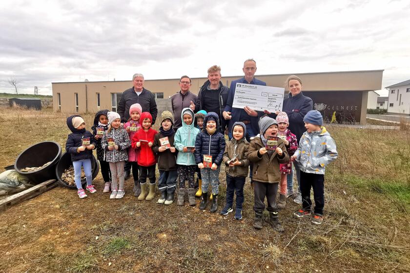 „Wir freuen uns, dass wir bei diesem tollen Projekt unterstützen durften und somit einen weiteren Teil zur Nachhaltigkeit beitragen können“, so Verena Müller, Einrichtungsleitung in der Johanniter-Kindertagesstätte Vogelnest und ergänzt: „Dank der großzügigen Zuwendung der Raiffeisenbank Estenfeld-Bergtheim, können wir weitere Spielgeräte für unseren Außenbereich anschaffen.“
