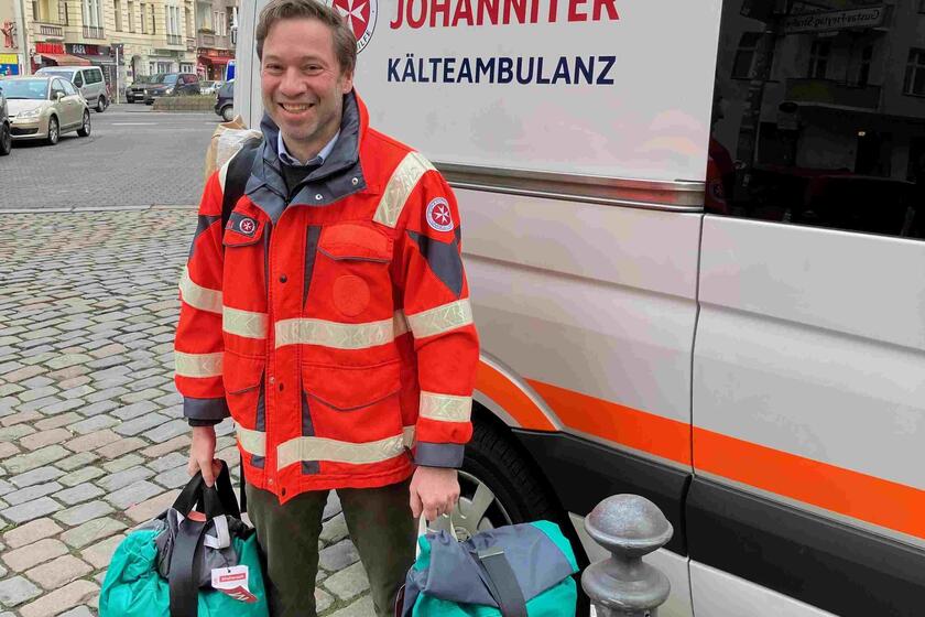 Die Johanniter-Hilfsgemeinschaften und die Sheltersuit Foundation helfen obdachlosen Menschen in den eisigen Tagen