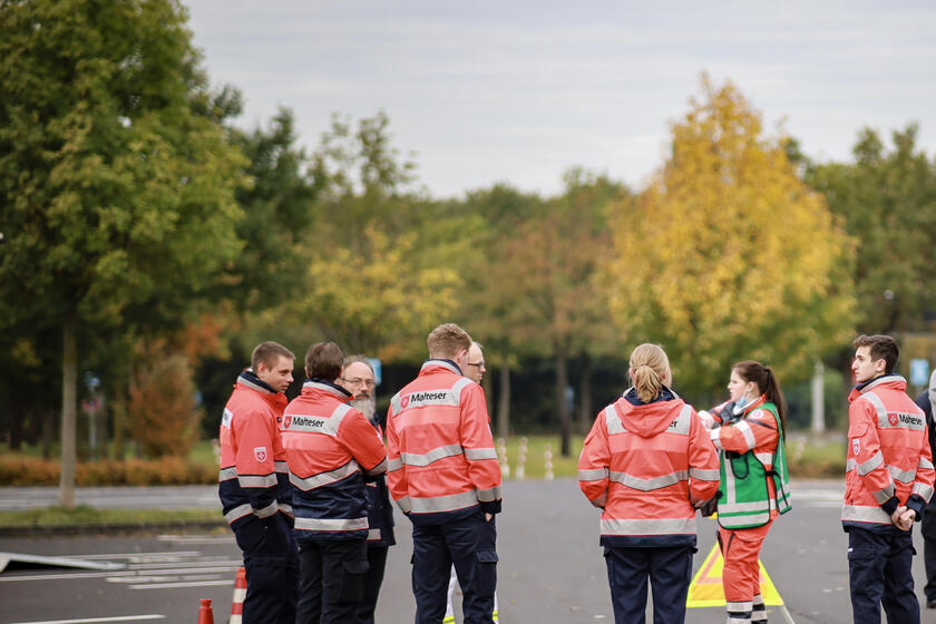Morgenstund hat ja bekanntlich Gold im Mund. Und so hieß es am Sonntagmorgen um 8 Uhr „Kickstart“ für 55 Ehrenamtliche Johanniter aus Düsseldorf - bereit machen zur großen Einsatzübung. Gemeinsam mit einer Einsatzeinheit der Malteser galt es, einen Parcours mit fünf Stationen zu meistern. Nach einem gemeinsamen Frühstück und bei strahlendem Sonnenschein strömten die Teams in den Einsatzfahrzeugen los. Ohne Adresse, nur mit Hilfe von Koordinaten mussten zunächst die Einsatzstellen gefunden werden.