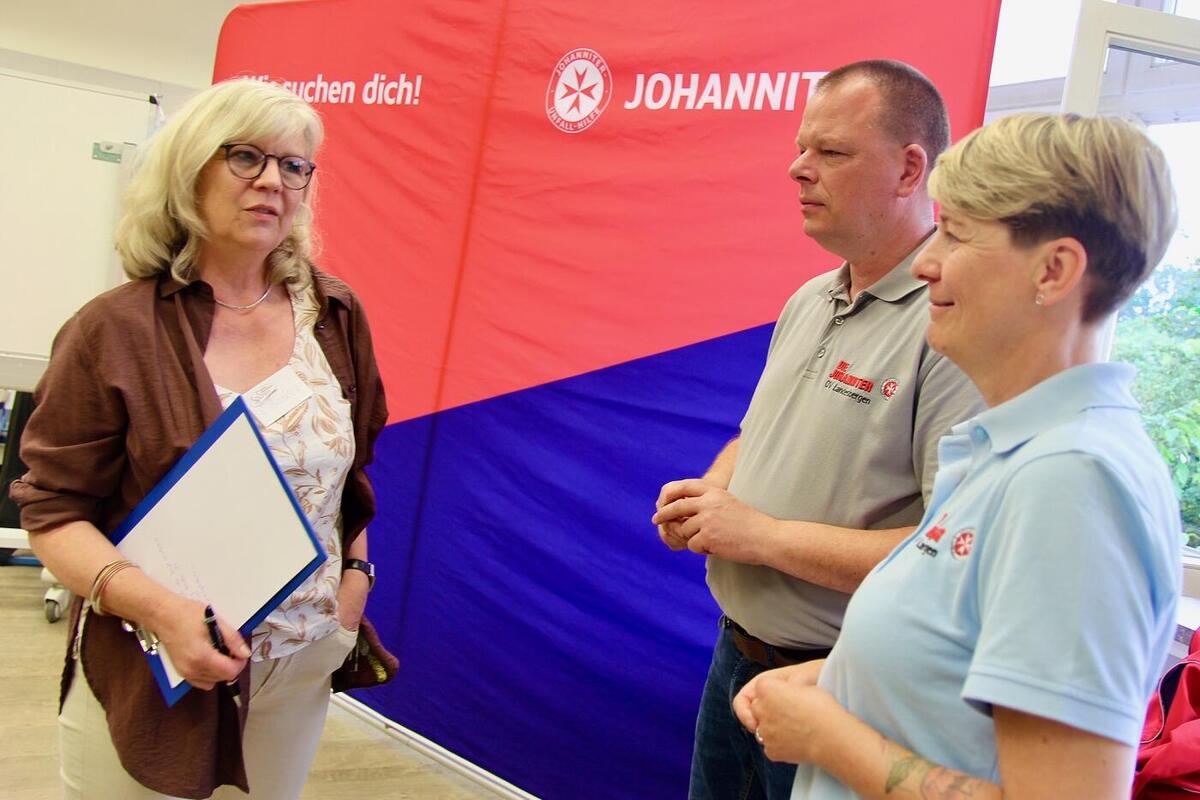 „Wir wollen über einen etwaigen aktuellen Bedarf hinaus bei Veranstaltungen wie dieser mehr Präsenz zeigen“, betonte Markus Sudmann. Als Arbeitgeber mit vielen Angeboten sollen die JUH – und vor Ort der OV Landesbergen – auch im Landkreis Nienburg noch bekannter werden. Zudem hatten viele Berufsschüler*innen auch Fragen nach bestimmten Arbeitsbereichen oder JUH-Angeboten in angrenzenden Gebieten; dem Heidekreis etwa oder der Region Hannover. Fragen, die auch bei Recruiterin Greta Seliger perfekt aufgehoben waren.
