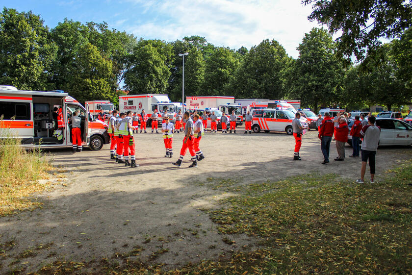Die Einsatzleitung vor Ort haben Verbandsführer Timo Brüning vom Ortsverband Wunstorf-Steinhuder Meer sowie Zugführer Sebastian Hochgräfe vom Nordhannoverschen Ortsverband. Die Johanniter gehen mit 80 Helferinnen und Helfern sowie 28 Fahrzeugen mit Anhängern in den Einsatz. Mit dabei sind drei Gerätewagen Sanität. Das sind Zehntonner mit Material zur Erstellung von zwei Unfallhilfsstellen. Außerdem fahren ein Küchenkraftwagen mit Feldküche mit, ein Wechsellader mit einer kompletten technischen Werkstatt, mehrere Rettungswagen, kleine Kommandowagen zum Erkunden der Umgebung und diverse Mannschaftstransportwagen zur Versorgung der Einsatzkräfte. Der Ortsverband Wunstorf-Steinhude stellt den Führungskraftwagen, von dem aus der Einsatz der Johanniter koordiniert und mit der Gesamteinsatzleitung vor Ort abgesprochen wird. „Wir stehen in einem ständigen und direkten Austausch mit den anderen Hilfsorganisationen, um möglichst effizient helfen zu können“, sagt Michael Homann. Die Verpflegung der Einsatzkräfte übernimmt der Ortsverband Wunstorf-Steinhuder Meer, der auch eine PSNV-Staffel mit ausgebildeten Helferinnen und Helfern für die psychosoziale Notfallbetreuung stellt. Der Nordhannoversche Ortsverband entsendet eine Patiententransportstaffel, aus allen Verbänden kommen - vom Sanitätshelfer bis zum Arzt – die Kräfte für den Einsatzzug Sanität/Betreuung.