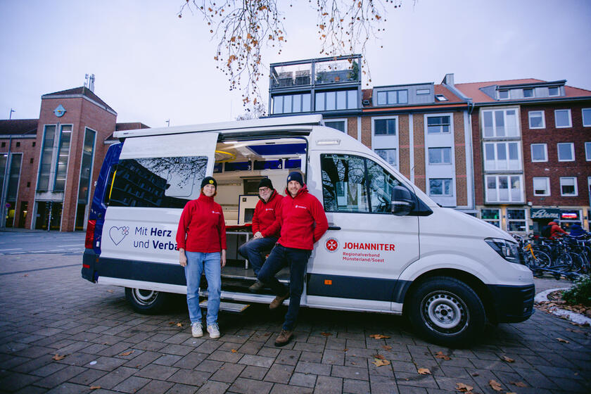 Genau wie der “Pflasterlaster” feierte auch ein weiteres Kältehilfe-Projekt der Johanniter in NRW kürzlich seinen einjährigen Geburtstag: die mobile Wundversorgung der Johanniter in Münster. Zwei Mal pro Woche behandelt ein ehrenamtliches Team im “Wundmobil” hinter dem Münsteraner Bahnhof wohnungslose Menschen – auch hier unbürokratisch ohne Anmeldung oder Versicherung. So helfen wir Menschen, die aus Armut, Angst oder schlechten Erfahrungen keinen Zugang zum Gesundheitssystem haben. Neben medizinischer Hilfe finden sie bei uns einen geschützten Raum für Gespräche und weitere Hilfen.