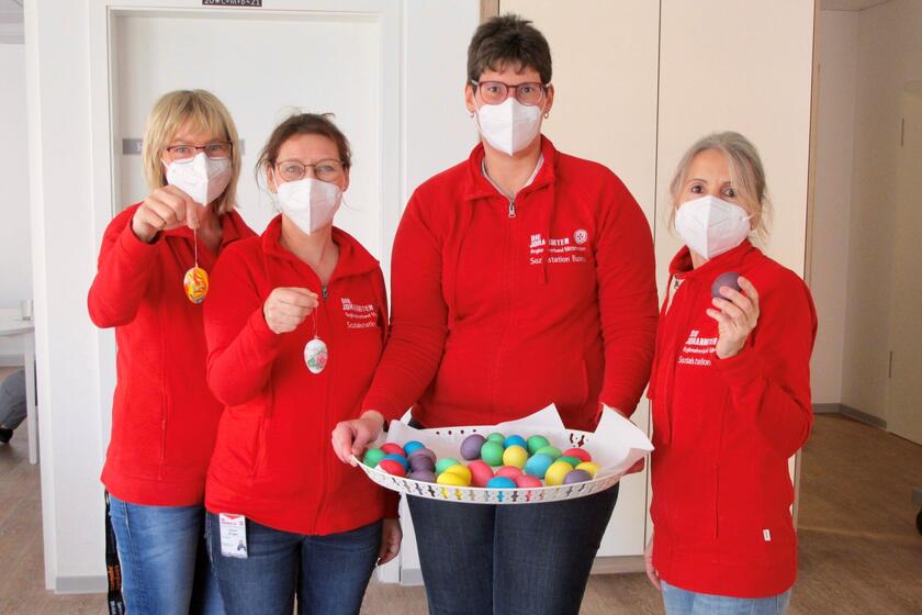 Zum Frühlingsanfang hat Betreuungskraft Gabriele Krüger auf der Querflöte ein paar Lieder angestimmt, welche die Senior*innen erraten mussten. In die Karwoche startete man mit traditionellem Eierfärben, wobei vier verschiedene Verzier-Techniken angewendet wurden: Färben per Farbtablette, Marmorieren in der Hand, Marmorieren im Glas und Anbringen hübscher Banderolen.