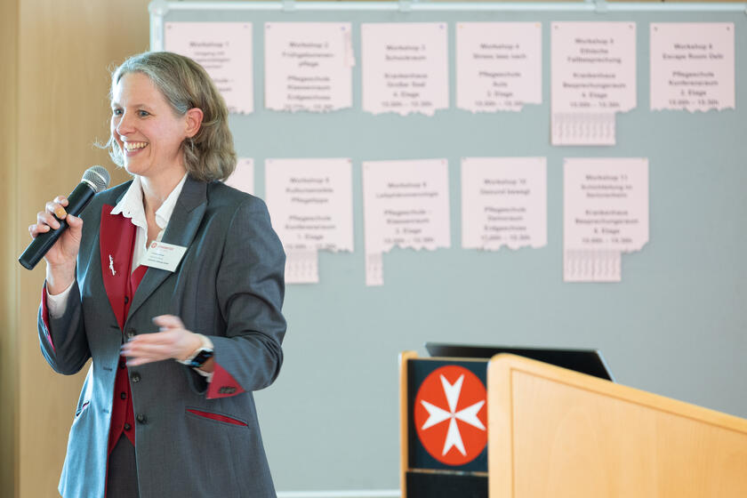 Dies im Blick, verband das Format erneut ein kompaktes Symposium mit Workshops und vielfältigen Impulsvorträgen. Hierzu brachten Expertinnen und Experten aus Lehre, Pflege, Medizin und Management ihre jeweiligen Perspektiven ein. Nach der offiziellen Begrüßung durch Oberin Christina Körner, Schulleiterin der Johanniter Bildungs-GmbH Bonn, beleuchtete Prof. Dr. Yon-Dschun Ko, Ärztlicher Direktor der Johanniter-Kliniken Bonn, die aktuellen Entwicklungen in der Onkologie und die damit verbundenen Rollenfelder der Pflege. Krankenhausdirektor Andreas Heuser thematisierte die übergeordnete Funktion des Krankenhausmanagements und die darauf bezogenen Karriere- und Entwicklungsmöglichkeiten für ausgebildete Pflegefachpersonen. Wertvolle Impulse kamen zudem von Kathrin Jördens, Einrichtungsleiterin des Johanniterhauses Köln-Porz, die die spezifischen Anforderungen der Pflege in Senioreneinrichtungen in den Fokus rückte, sowie von Jennifer Shores, Fachkrankenpflegerin für Notfallpflege und Lehrende an der Johanniter Bildungs-GmbH Bonn, die über die Entwicklungen in der Notfallpflege referierte.