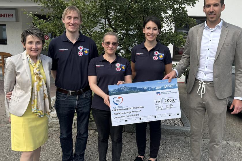 In der vergangenen Woche fand in der Johanniter-Dienststelle in Kempten die Spendenübergabe für das Kriseninterventionsteam (KIT) Kempten statt. Der gemeinnützige Verein Raiba hilft e.V., der aus Mitarbeitenden der Raiffeisenbank Kempten-Oberallgäu eG besteht, überreichte dem Kriseninterventionsteam Kempten eine Spende in Höhe von 3.000 Euro. Jeweils 1.000 Euro gingen an die drei beteiligten Hilfsorganisationen, die das Kriseninterventionsteam Kempten-Oberallgäu bilden: die Notfallseelsorge Kempten, Bayerische Rote Kreuz Kreisbereitschaft Oberallgäu und die Johanniter-Unfall-Hilfe e.V. des Regionalverbandes Bayerisch Schwaben.