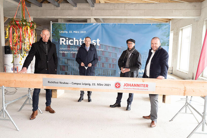 Am 22. März hat die Johanniter-Akademie Mitteldeutschland Richtfest für den Campus Lorenzo gefeiert – das neues Bildungszentrum in Leipzig. Aufgrund der Pandemie fanden die Feierlichkeiten im kleinen Kreis statt. Der Sächsische Ministerpräsident Michael Kretschmer überbrachte seine Glückwünsche per aufgezeichneter Videobotschaft. Vor Ort gratulierten Bundestagsabgeordneter und Radsport-Legende Jens Lehmann und der bekannte Leipziger Stadtrat Christopher Zenker.