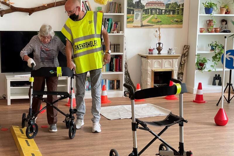 Die Gäste unserer Tagespflege in Branitz (Cottbus) konnten wieder den sicheren Umgang mit Hilfsmitteln wie Rollatoren oder Rollstühlen unter Beweis stellen. Der gemütliche Aufenthaltsraum wurde kurzerhand in einen Verkehrsparcours verwandelt. Bordsteinkanten, hinausragende Gehwegplatten und lose Teppiche wurden simuliert. Alle Teilnehmenden bekamen nach erfolgreich absolvierter Strecke auch einen Rollator-Führerschein.