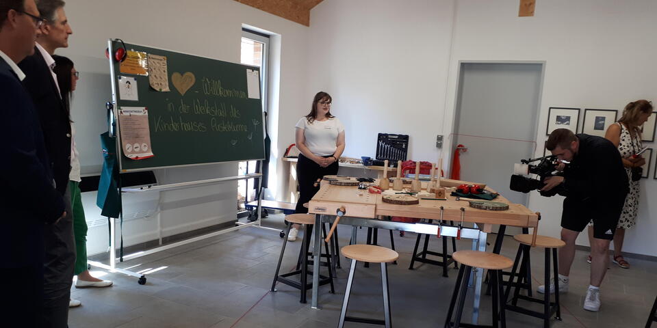 Zur 11. Langen Nacht der Kunst- und Handwerkshöfe in Burg (Spreewald) wird die neue multifunktionale Kinder-Werkstatt am Johanniter-Kinderhaus „Pusteblume“ zum ersten Mal ihre Pforten für große und kleine Interessierte öffnen und ihr inklusives Konzept mit Leben füllen können. Stiftungszweck der Saint-Gobain Foundation ist unter anderem die Unterstützung von Bauprojekten im sozialen Bereich. Der international tätigen Foundation liegt auch die lokale Verankerung besonders am Herzen. Mit der neuerlichen Zuwendung an das einzige Kinderhospiz im Land Brandenburg zugunsten der Idee einer inklusiven und multifunktionalen Kinder-Werkstatt wird es möglich, dass die kleinen Kinderhaus-Gäste handwerkliche Kreativmöglichkeiten in einer inklusiv ausgestatteten Werkstatt erhalten.