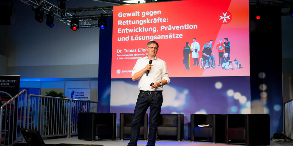 Ein viel beachteter Programmpunkt der 112RESCUE war der Vortrag von Dr. Tobias Eilers, NRW-Pressesprecher der Johanniter und Lehrrettungsassistent a. D., zum Thema “Gewalt gegen Rettungskräfte”. Er analysierte aktuelle Statistiken, gesellschaftliche Entwicklungen und neue Phänomene wie das Livestreaming von Angriffen auf Rettungskräfte. Und er stellte Lösungsansätze vor: von besseren Schnittstellen zur Polizei über Opferschutz und Rechtsbeistand bis hin zu gezielten Social-Media-Kampagnen gegen Gewalt. Die anschließende Diskussion zeigte das große Interesse am Thema – insbesondere bei Einsatzkräften.