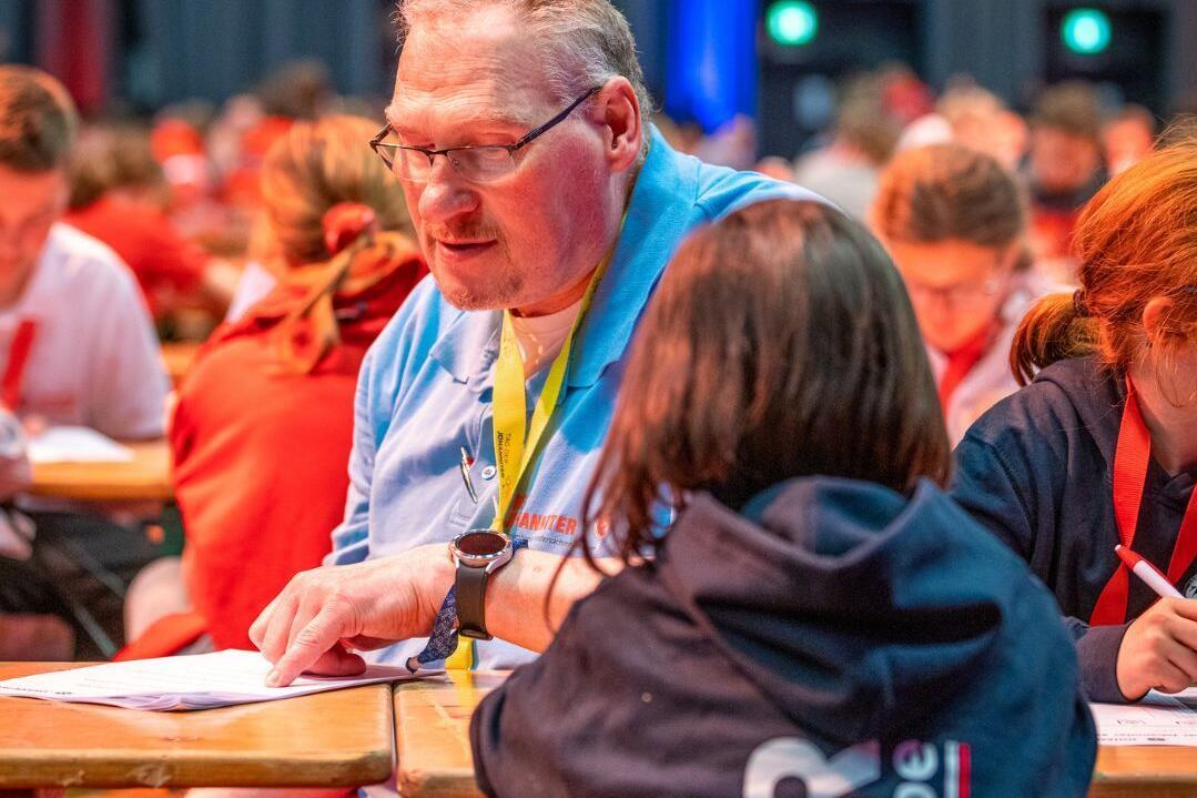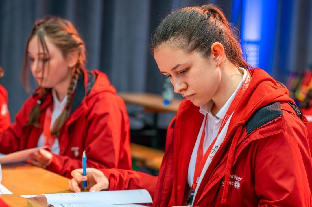 Die B-Mannschaften, Teilnehmende im Alter von 12 bis 17 Jahren, absolvierten einen Basispraxistest, also ein kleineres Fallbeispiel, welches immer in 2er Teams absolviert wird, einen Praxistest, bei dem es sich um ein größeres Fallbeispiel handelt, welches von 4 Jugendlichen aus einer Mannschaft bearbeitet wird, sowie den Trageparcour. Hierbei müssen die Mannschaften mit einer Trage verschiedene Hindernisse wie zum Beispiel ein Fenster, eine Wippe, oder eine Treppe überwinden. Die C-Mannschaften setzen sich aus Teilnehmenden im Alter von 6 bis 11 Jahren zusammen. Diese absolvieren statt dem Basispraxistest einen Kreativstest. Hier müssen die Teams jedes Jahr eine kreative Aufgabe lösen. In diesem Jahr galt es, in einem Schuhkarton die JJ darzustellen, und den Karton anschließend zu präsentieren. Den Trageparcour und ein größeres Fallbeispiel absolvieren die jüngsten Teilnehmenden ebenfalls, den Praxistest absolvierten die Gruppen in diesem Fall allerdings mit 6 Mitgliedern. Während des gesamten Wettkampfes wurden alle Teams von den Schlachtenbummler*innen, welche ebenfalls aus allen Himmelsrichtungen angereist sind, begeistert angefeuert.