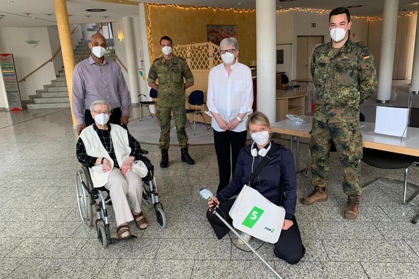 Am 7.5.2021 besuchte ein WDR5-Team mit der Journalistin Julia Schöning das Johanniter-Stift Dortmund, um über die Unterstützung der Bundeswehr in der Corona-Pandemie zu berichten. Zwar sind die meisten Bewohnerinnen und Bewohner geimpft, aber die Unterstützung der Soldatinnen und Soldaten ist besonders gefragt bei der Besucherkontrolle. Darüber hinaus helfen sie bei der Essensausgabe und gehen mit den Bewohnerinnen und Bewohnern spazieren. Diese nehmen die Mitarbeit durch die Bundeswehr sehr positiv auf und genießen vor allem die Gespräche.