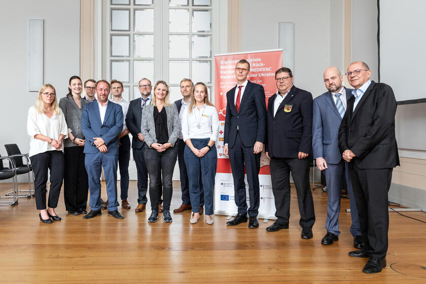 Mehr als 850 schwer verletzte und schwer erkrankte Patienten aus der Ukraine sind seit Beginn des bewaffneten Konflikts über das EU-Katastrophenschutzverfahren zur Behandlung nach Deutschland gebracht und über den Kleeblattmechanismus auf deutsche Krankenhäuer verteilt worden. Seit September 2022 unterstützen die fünf großen deutschen Hilfsorganisationen Arbeiter-Samariter-Bund (ASB), Johanniter-Unfall-Hilfe (JUH), Deutsche Lebens-Rettungs-Gesellschaft (DLRG), Deutsches Rotes Kreuz (DRK) und Maltester-Hilfsdienst (MHD) die medizinische Hilfe mit ergänzender sozialer Betreuung und Rücktransporten für Patienten mit Unterstützungsbedarf. Das Projekt wird in enger Zusammenarbeit mit dem Bundesministerium des Innern und für Heimat (BMI), dem Bundesministerium für Gesundheit (BMG) und dem Bundesamt für Bevölkerungsschutz und Katastrophenhilfe (BBK) umgesetzt.