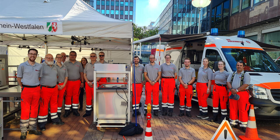 Auch bei strahlendem Sonnenschein drehte sich am heutigen Samstag in der Dortmunder Innenstadt rund um die Katharinenstraße alles um das Thema "Unwetter". Die im Katastrophenschutz aktiven Hilfsorganisationen – darunter auch die Johanniter des Regionalverbands Östliches Ruhrgebiet – durften zum landesweiten Katastrophenschutztag zahlreiche interessierte Besucherinnen und Besucher begrüßen , über ehrenamtliche Betätigungsmöglichkeiten informieren und aufgrund des Leitthemas nicht zuletzt dazu beraten, wie man sich bei Hochwasser, Starkregen oder Stürmen am besten verhält. Gastgeber war die Stadt Dortmund, die den Aktionstag gemeinsam mit dem NRW-Innenministerium veranstaltete. Ziel des Katastrophenschutztages ist es, die Menschen für das Thema zu sensibilisieren und ihnen nützliches Wissen an die Hand zu geben, damit sie in einer Notlage bestmöglich gewappnet sind.