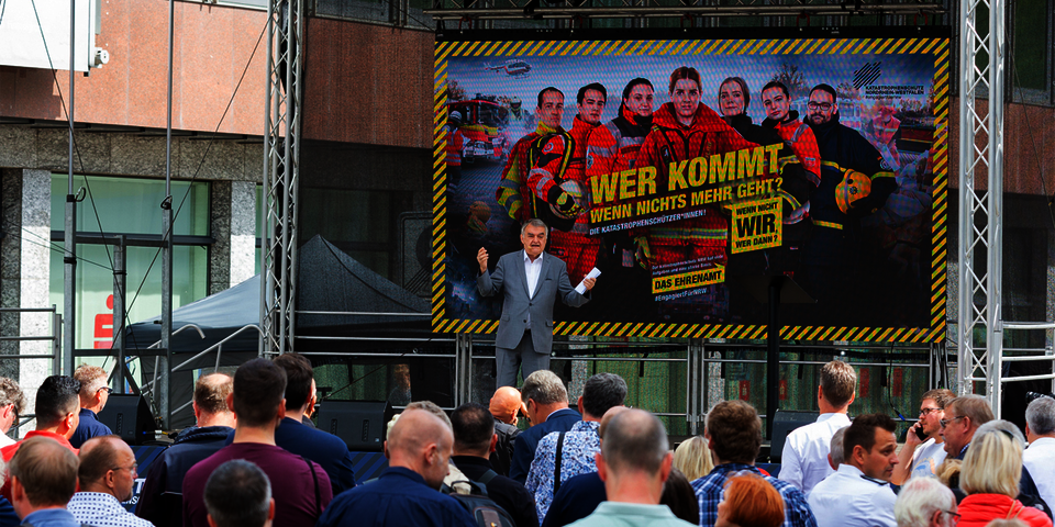 Minister Herbert Reul nutzte die Gelegenheit, um den freiwilligen Kräften für ihren Einsatz zu danken: "Der Katastrophenschutz in Nordrhein-Westfalen ist ohne ehrenamtliches Engagement schlichtweg nicht möglich. Mehr als 80 Prozent der Leute machen das freiwillig neben ihrem Job, der Schule oder dem Studium. Sie halten den Laden am Laufen und dafür bin ich unendlich dankbar."